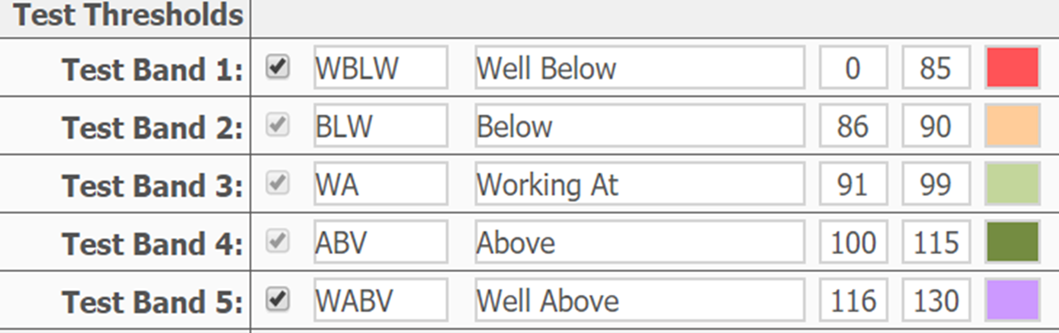 Test ThresholdsYou are now able to set your test thresholds within your EAZMAG system, ensuring when you analyse the results this will be seen in the format you require. Go to: Settings > Assessment Set Up > KS1/KS2 Assessing without levels > Scroll down to test thresholds: