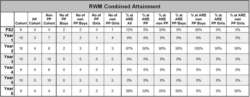 This report will give a breakdown of pupils at Age Related Expectations for combined and core subjects for Years 1 to 6 for your chosen factor/group.