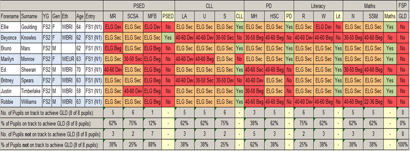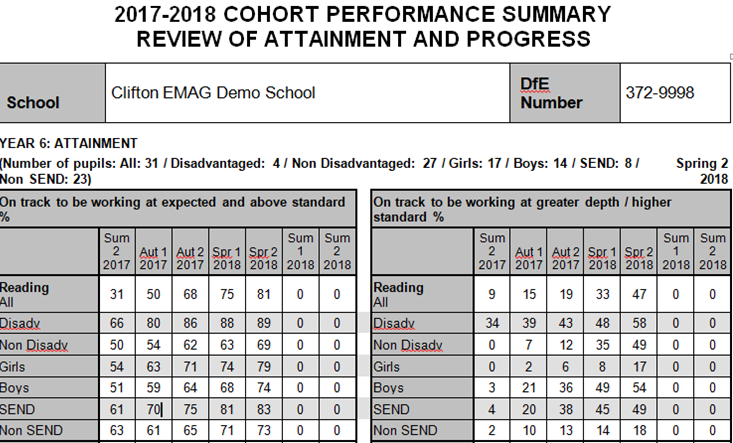 This report is a modified version of the "School Review". To assist with schools who have to assess half termly, this report will show greater detail.