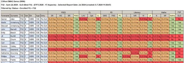 For a report that's useful at any time, but especially so at this point in the year, look no further than GLD (Best Fit). It's a concise, functional summary of attainment in the GLD areas of learning with a choice of strand and aspect views. It's the first port of call for many EYFS settings when analysing data and provides an essential tracking guide for GLD.