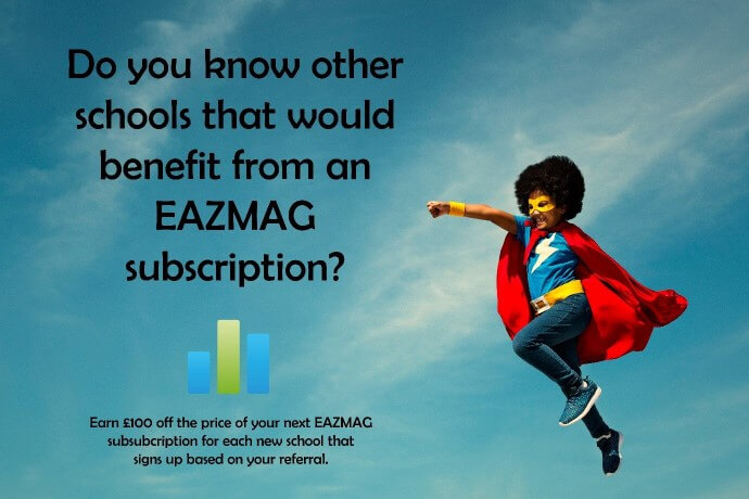 And finally, a reminder that you can a receive £100 discount on the price of your next EAZ MAG subscription for each school that signs up based on a referral from you. So there's never been a better time to spread the word about what EAZ MAG can offer!